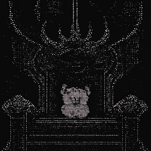 a white teddy bear sitting on top of a throne