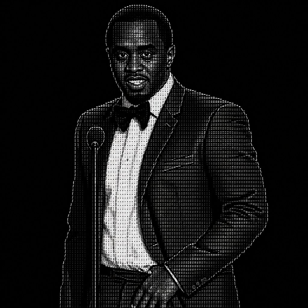 a man in a tuxedo standing in front of a microphone