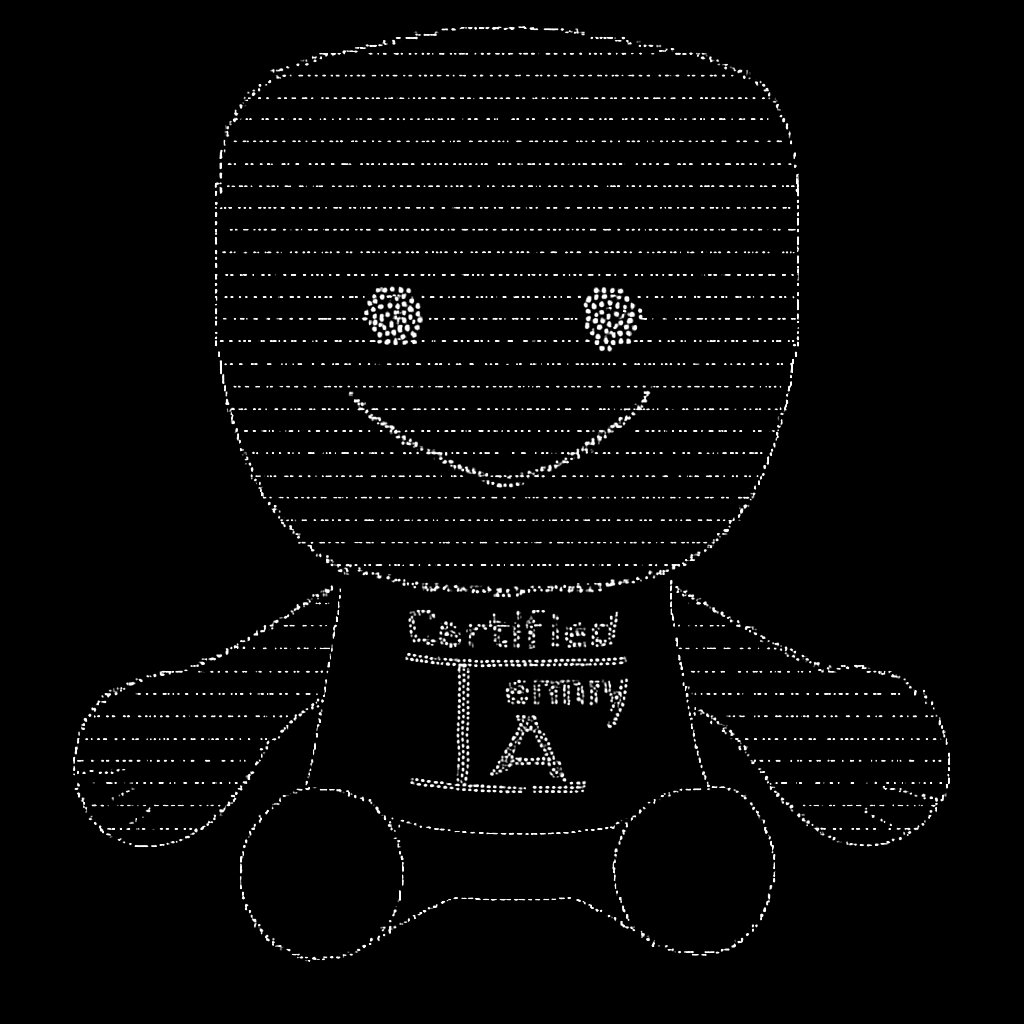 a white stuffed toy with a black shirt