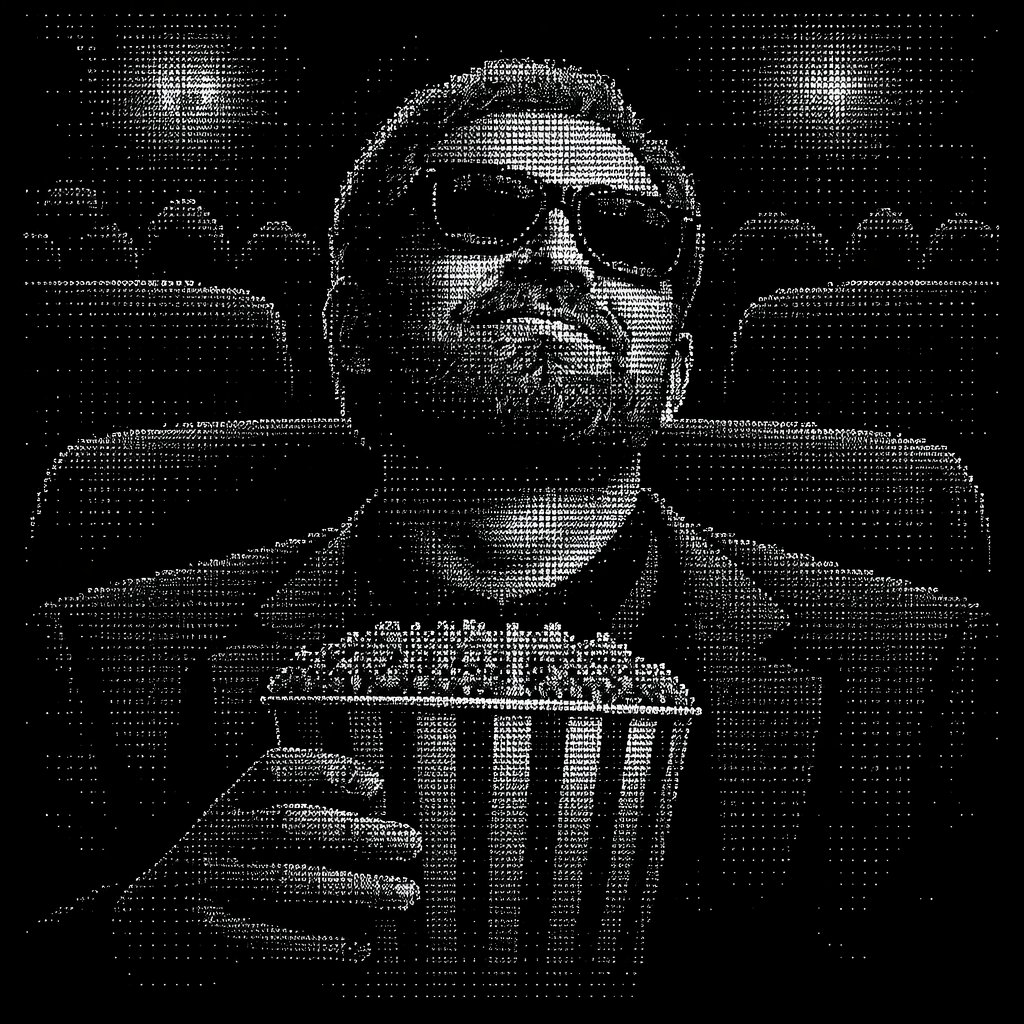 a black and green photo of a man in a suit