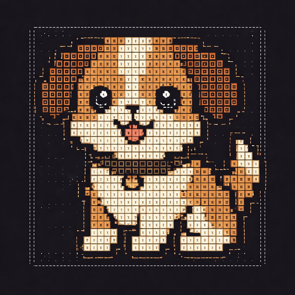 a pink and black square with a bow around it's neck
